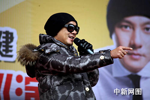 中新網(wǎng)南昌1月17日電(劉占昆)16日,香港著名影視明星張衛(wèi)健現(xiàn)身南昌,與在寒風(fēng)中苦苦等候他兩個(gè)多小時(shí)的粉絲見面。張衛(wèi)健在現(xiàn)場(chǎng)用幽默的話語調(diào)侃南昌歌迷,在離開現(xiàn)身時(shí)引得眾多忠實(shí)粉絲狂追數(shù)十米遠(yuǎn)。