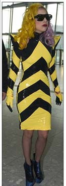 據(jù)臺(tái)灣媒體報(bào)道,美國(guó)女星LadyGaga近日出現(xiàn)在倫敦機(jī)場(chǎng)時(shí),竟穿著活像交通標(biāo)志的黃底黑條紋洋裝一件,很顯然她決定要自己為自己開道,以減少不必要的支出。