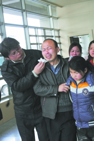 自從醫(yī)院方面向王成記透露李榮珍的病情繼續(xù)惡化后,一向很堅(jiān)強(qiáng)的王成記仿佛老了10歲。雖然昨日換了一身干凈衣服,可是王成記兩眼無(wú)光,還沒(méi)走近重癥監(jiān)護(hù)室已哭得死去活來(lái)。因?yàn)橹匕Y監(jiān)護(hù)室每次只能進(jìn)兩個(gè)人,所以王成記的女兒、兒子以及親朋好友進(jìn)去后,王成記才一個(gè)人走了進(jìn)去。剛走到妻子的病床前,這個(gè)男人一下跪了下去,握緊著李榮珍的右手,淚流滿面。“你快點(diǎn)醒來(lái),兩個(gè)娃娃還等著你,你不要睡了……”王成記的哭聲,讓現(xiàn)場(chǎng)的每個(gè)人都感到很難過(guò)。盡管媒體昨天報(bào)道李榮珍已經(jīng)腦死亡,但王成記表示醫(yī)院并沒(méi)有向他出示腦死亡的證明,雖然他也表示妻子生存的幾率很小。王成記與家人商量后,表示將繼續(xù)醫(yī)治妻子,希望能夠出現(xiàn)奇跡。