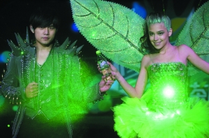 發(fā)布會(huì)現(xiàn)場(chǎng)采用4D光影技術(shù),化身奇幻武士的周董從升降臺(tái)升起,外套上綴滿了發(fā)出綠光的鐳射燈,首度嘗試“閃亮”登場(chǎng)讓他大呼過癮,還稱是出道至今最“屌”的記者會(huì)。對(duì)自己造型相當(dāng)滿意地周董,突發(fā)奇想跟現(xiàn)場(chǎng)記者大耍寶,自信滿滿地說:“我給大家變個(gè)魔術(shù)吧?我能控制自己身上的燈,我說亮它就亮,我說關(guān)它就關(guān)!闭f完立即演示亮燈,沒想到他都說了三次“亮燈”,身上依舊漆黑一片。周董往身旁使了個(gè)眼神,燈才瞬間亮了起來。沒看出“玄機(jī)”的記者要求他再熄燈試試,周董滿口答應(yīng)大叫“關(guān)燈”,可他沒留意到燈仍然亮個(gè)不停,反問記者“是不是很神奇?”被記者戳穿“燈還亮著”,頓感沒有面子的他扭頭沖助手大喊:“殺了你!”原來旁邊的女助手是“托兒”,手握開關(guān)鍵遙控他身上的閃燈,所謂“魔術(shù)”是兩人事先計(jì)劃好的小把戲。