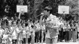 自云南遭遇60年不遇的大旱后,演藝圈各路名人紛紛傾囊相助。羽·泉也不甘落于人后。此次,羽·泉來到了云南第1000所希望小學(xué)——馬幫茶道明星國立希望小學(xué)。給學(xué)校的孩子們帶來書本和文具。羽·泉表示,藝人作為社會公眾人物,特別需要在這個時刻做出榜樣,用自己的行為去影響更多的人。同時,他們也表示,捐款是一件力所能及的事情,希望除了捐款之外,還能夠為災(zāi)區(qū)人民做得更多?紤]到嚴(yán)峻的旱情除了讓當(dāng)?shù)鼐用衩媾R吃水難的問題外,不少貧困家庭的學(xué)生也將面臨失學(xué)的困境。羽·泉決定捐助20余名貧困生,并現(xiàn)場發(fā)放了助學(xué)金。昨天,羽·泉的到來給學(xué)校帶來愛心和歡樂。除了捐助,羽·泉還和在校師生一起進(jìn)行了游戲互動,演唱了《彩虹》、《我快樂我歌唱》等歌曲。