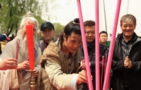 當(dāng)天上午開拍的第一場戲是小沈陽和一個白胡子老頭在碼頭上的戲份,引來很多人圍觀,趙本山為了給徒弟小沈陽打氣,也一直陪在現(xiàn)場觀看,趙本山表示:“來看他拍戲,自己也能找找感覺,我自己也有打戲,總不能輸給徒弟啊!