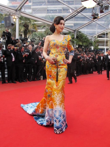卜柯文先生介紹說:“這套禮服并不是特意為戛納準備的,這其實是源自冰冰偶然的一個設計靈感,她早前跟我講了她的想法,而我也覺得范冰冰身上有著中國女明星少見的一種大氣的女王范兒,所以經(jīng)過討論決定改良清朝的龍袍在霸氣中展現(xiàn)東方美,于是就做了這么一套衣服,想找一個合適的場合展示。我們找到設計師勞倫斯·許先生請他幫我們把這個創(chuàng)意實現(xiàn),他安排了三十個工人在十五天內(nèi)連續(xù)的純手工制作,非常辛苦。所以冰冰也很感謝勞倫斯,也是因為有他的幫助才有了大家看到的這件禮服。(生活新報)