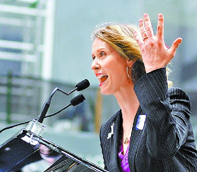 辛西亞3年前罹患乳癌,女友不離不棄陪她對抗病魔。她前天在記者會上公布訂婚喜訊,她說:“如果同志婚姻在紐約合法,我們一定會結(jié)婚。我不想假裝結(jié)婚,我們要真正的、合法的,能夠得到州政府認可的婚姻。”辛西亞的好友——《欲望城市》中的“夏綠蒂”克里斯廷·戴維斯,前天現(xiàn)身力挺她。