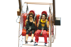 沖上云霄、過山車、大擺錘……小沈陽一共玩了八個項目,全是主題公園里最考驗人膽量的游樂項目。但小沈陽完全不放在眼里,他挑選了過山車的第一排坐;而坐在海盜船上的時候,他卻又挑了最后一排,甚至在海盜船擺蕩至最高處的時候,他竟然拉開了安全擋桿,站了起來大喊大叫,“完全玩瘋了,倒是下面的游客被他嚇得半死!迸阃臈钚〗阏f:“他告訴我,他很喜歡去游樂園玩,最喜歡迪斯尼。”小沈陽最后還對龍門陣提了意見:“他說玩得挺盡興的,不過與迪斯尼相比,還是要多多努力!
