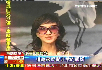 據(jù)臺灣TVBS報道,大墨鏡、白洋裝,港星趙雅芝跟著丈夫,一塊搭機抵達臺灣。趙雅芝表示:“很高興又來到臺灣,跟大家見面!