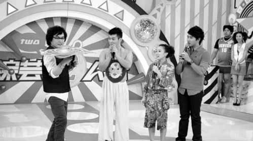 “連轉(zhuǎn)手帕”、“模仿大猩猩”、“翻跟斗摔跤”……二人轉(zhuǎn)舞臺(tái)上的經(jīng)典絕活,被趙本山的弟子張小飛、賀美玲、王金龍和毛毛原汁原味地呈現(xiàn)在臺(tái)灣的綜藝節(jié)目當(dāng)中,震驚了寶島的觀眾,簡(jiǎn)單的笑聲和尖叫聲已經(jīng)不足表達(dá)他們的驚喜,見(jiàn)多識(shí)廣的臺(tái)灣綜藝名嘴康康和歐弟甚至都大嘆佩服。