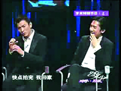 當(dāng)梁朝偉一上場,朱軍便說:“上次錄《無間道》時(shí)你和劉德華一起欺負(fù)我,這次就你一個(gè)人,我終于可以報(bào)仇了!倍撼瘋t很不解地說:“上次是你欺負(fù)我們吧!