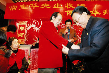 最近備受“遺產(chǎn)案”和“廣告代言門”事件困擾的侯耀華,15日正式拜師常寶華。當(dāng)日,在唐杰忠、石富寬等全國(guó)200多位曲藝同行面前,侯耀華不忘為自己“喊冤”:“我做的事情,天地可鑒!”