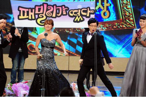 李孝利和劉在錫曾在去年的SBS演藝大獎頒獎禮中憑借《家族誕生》雙雙獲得大獎。