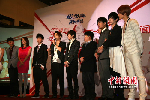中新網(wǎng)3月31日電(王祎) 今天下午,“2010快樂(lè)男聲”在北京宣布正式啟動(dòng),張杰和蘇醒作為往屆快男代表出席了活動(dòng),至上勵(lì)合組合也到場(chǎng)助陣,本屆快男總導(dǎo)演洪濤在介紹賽制時(shí)重點(diǎn)強(qiáng)調(diào)了兩大看點(diǎn)。步步晉級(jí)的賽制在此次快男比賽有所突破,由海選中有潛質(zhì)選手組成的偶像組合“快樂(lè)天團(tuán)”將直接晉級(jí)總決賽,空降六強(qiáng)晉級(jí)賽;另一看點(diǎn)就是首開(kāi)北美、澳大利亞、馬來(lái)西亞三大海外報(bào)名點(diǎn)。同時(shí),對(duì)于韓庚出任快男代言人的傳聞,洪濤間接給與了否定,稱(chēng)并沒(méi)有設(shè)立代言人的位置。