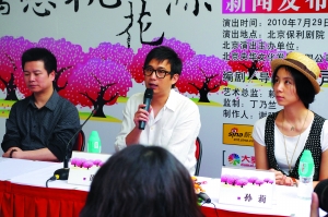 驚艷版的“暗戀”部分仍由黃磊、孫莉出演,并無太大改動;而越劇名角趙志剛等將加盟“桃花源”部分,很多原來的話劇對白將改由越劇唱腔,到時想必會帶給京城觀眾全新的視聽體驗。此前,該版已經(jīng)在杭州上演過且反響不錯,但到了北京是否受歡迎仍是未知數(shù),黃磊對此表示,“我也擔(dān)心大家能不能聽懂越劇,其實我就不懂,但我會覺得非常有趣。”黃磊還透露了之所以如此創(chuàng)新的淵源,“2006年8、9月份時,我在臺灣的大學(xué)講課,當(dāng)時看到了歌仔戲版本的《暗戀桃花源》,也是戲曲的唱和話劇的說相結(jié)合。還有一次,是在2007年吧,我在香港,看到的版本是廣東話和普通話對著演的版本,兩種口音有一種沖突在里面。所以我們就想到搞這么一個越劇版。好多人也問我們?yōu)槭裁匆蛇@事兒,賴?yán)蠋熣f過,就是好玩兒!庇忻襟w順勢問,有沒有想過將來再排個京劇版,黃磊笑稱,“想過,我甚至建議賴?yán)蠋煾銈二人轉(zhuǎn)版,請趙本山老師和小沈陽來演,肯定好看。”記者 馮遐
