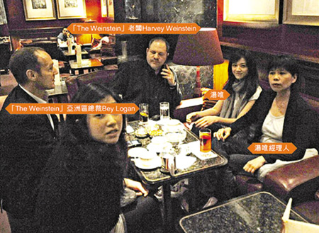 4月12日,湯唯與經(jīng)紀人及助手在香港中環(huán)文華東方酒店與“韋恩斯坦”老板Harvey Weinstein會面,F(xiàn)場所見,湯唯的英語非常流利。發(fā)現(xiàn)記者后,她面帶笑容,表現(xiàn)得體。在場的亞洲區(qū)總裁Bey Logan事后表示,Harvey Weinstein對湯唯大為贊嘆。Bey Logan說:“那天我們和湯唯只是一次很簡單的聚會,主要是想先了解一下她。她是一個不可多得的人才,會講廣東話、普通話和英文,很不錯!眴柕绞欠褚延泻萌R塢導(dǎo)演邀湯唯合作,他說:“一定有啦!如果有適合的角色,我們肯定會找湯唯!