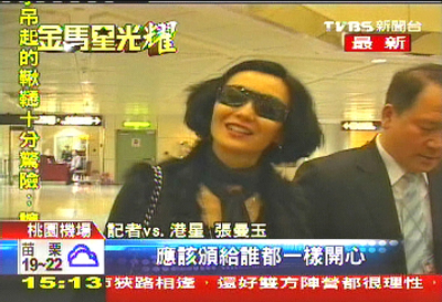 據(jù)“東森新聞”消息,墨鏡、絲巾,肩上充滿造型的包包,港星張曼玉一身流行打扮現(xiàn)身桃園機場。記者:“大概心里有沒有想說一個名單?”港星張曼玉:“嗯,沒有,我覺得頒獎嘉賓,不應(yīng)該這樣想,應(yīng)該頒給誰都一樣開心!