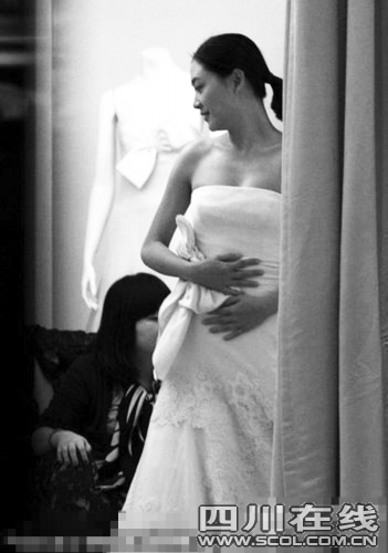 當(dāng)日,應(yīng)采兒先試穿了一件大露背簡約設(shè)計(jì)拖地白禮服,新娘姿態(tài)立即顯現(xiàn),由于裙擺過長,大約四五個(gè)助理及店員蹲在地上,為陳太太整理禮服。應(yīng)采兒對著鏡子反復(fù)照看,又俯身翻看擺在桌上的圖冊,進(jìn)試衣間換上第二套。同樣是簡潔大方的經(jīng)典設(shè)計(jì)款,腰間的綠色綢緞腰封更顯身材,應(yīng)采兒的表情顯示她更青睞這一套,對著鏡子陶醉半天,不停轉(zhuǎn)身,從各個(gè)角度欣賞鏡中的自己,笑容也愈發(fā)燦爛,遠(yuǎn)遠(yuǎn)看去就像一個(gè)即將踏入婚姻殿堂的普通女孩,一臉幸福。最后應(yīng)采兒換上第三套香檳色深V小禮服,優(yōu)雅的設(shè)計(jì)和顏色同樣很襯托應(yīng)采兒的膚色,三件禮服各有千秋,應(yīng)采兒卻相當(dāng)有主見,很快選擇其中一套,滿載而歸,步出店外時(shí)應(yīng)采兒同店員告別,心情越發(fā)燦爛。據(jù)悉,這個(gè)品牌的婚紗價(jià)格不菲,一套婚紗的價(jià)格大約在8000美金到12000美金之間,最貴的能買下一輛名車,但憑借過硬的品質(zhì)和永遠(yuǎn)不出錯(cuò)的設(shè)計(jì),依舊讓全世界的明星們趨之若鶩。珍妮弗·洛佩茲,莎朗·斯通等好萊塢明星都是她的忠實(shí)擁躉,劉嘉玲不丹大婚時(shí),亦身著的是該品牌婚紗。