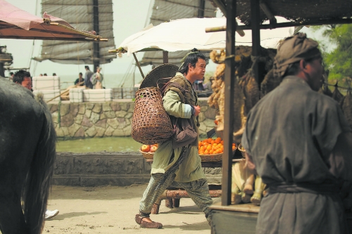 小沈陽(yáng)的第一場(chǎng)重頭戲是他所扮演的小鞋匠在碼頭上巧遇一位白胡子老翁,受其一番指點(diǎn)和教導(dǎo),這位老翁也是江湖一位武俠高手,之后和趙本山所扮演的河盜一起把武功秘籍傳授給小沈陽(yáng)。這場(chǎng)戲選擇在無(wú)錫影視基地的太湖碼頭拍攝,碼頭邊?恐鴶(shù)艘巨大的帆船,小沈陽(yáng)進(jìn)入狀態(tài)非?,這場(chǎng)戲拍攝得也相當(dāng)順利,連在旁觀看的趙本山也忍不住面帶微笑。