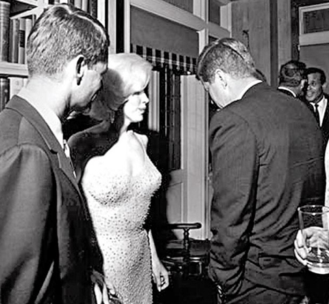 報道稱,瑪麗蓮•夢露與肯尼迪的戀情是公開的秘密,但很少有兩人合照流出,皆因合照都被特工沒收,而唯一漏網(wǎng)之魚是這張在1962年5月19日民主黨籌款晚會上所拍,當時夢露剛向肯尼迪獻唱生日歌。肯尼迪發(fā)現(xiàn)有鏡頭,刻意別過頭去。