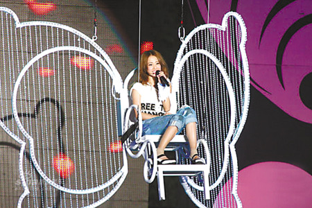 “蔡依林花蝴蝶慶功演唱會(huì)”前天在臺(tái)中市市民廣場(chǎng)舉行。唱片公司不惜重金,讓她坐在蝴蝶造型的座椅上,懸在十米高空演唱,嚇得她連連尖叫。其間,蔡依林還收到一封唱片公司企宣部寫(xiě)的感人信件,讓她在臺(tái)上哭成淚人兒。