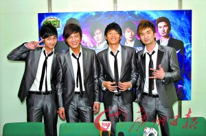 日前曾做客《大洋星閃亮》的國內(nèi)首支男模新聲——風(fēng)云組合,5月18日晚又帶著新專輯《風(fēng)云》參加了廣東電臺音樂之聲為其舉行的歌迷會,現(xiàn)場演繹了《你愛我嗎》、《TOP STAR》等多首不同風(fēng)格的歌曲,展示了自己T臺以外的舞臺魅力。