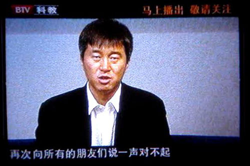 今天中午12時,一個身穿黑色西服的蕭瑟背影出現(xiàn)在北京電視臺《法治進行時》欄目中,因吸毒被拘留的歌星滿文軍首次向公眾道歉。記者看到滿文軍在道歉過程中多次說到“我錯了”,并表示今后將先做好人,再唱好歌。