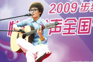 曾:嗯,最初是寫歌詞,當(dāng)時(shí)是初三,因?yàn)榭荚噳毫Υ,就自己涂涂畫畫寫出來了。開始有曲譜配歌詞是高三的時(shí)候,會彈吉他了!秾W(xué)習(xí)×××的日子》(由于她說話聲音實(shí)在太綿羊,重復(fù)了3次,記者還是沒聽清楚歌名),是一首校園歌曲,這是第一首完整的歌,也是完整的曲,就為了鼓勵(lì)考英語專業(yè)四級的人們,加油、努力,只唱給自己的朋友聽過。大家覺得,還行吧。