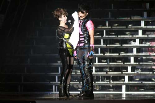 中新網(wǎng)5月18日電 羅志祥昨晚舉行演唱會,現(xiàn)場十分熱烈,先是力邀王心凌上臺,接著和蕭亞軒貼臉,令對方十分害羞,還和天后級歌手張惠妹一起曖昧合唱。