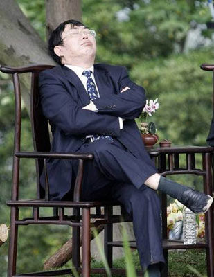 現(xiàn)場照片昨天在網(wǎng)上曝光,一時間引起網(wǎng)友的口水無數(shù)。昨日就此事接受記者采訪時,正在張家港塘橋鎮(zhèn)參加活動的老聶一開始有些驚訝:“啊?你怎么知道這件事的?”得知自己打瞌睡的視頻和照片在網(wǎng)上被傳開之后,聶大師顯然有些不爽:“網(wǎng)上連這個也發(fā)布,我看不太好吧!”