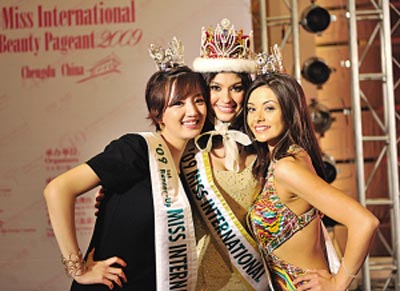 28日晚,第49屆國際小姐世界大會全球總決賽在成都舉行,來自全球66個國家和地區(qū)的國際小姐決戰(zhàn)“美麗之巔”,經(jīng)過兩個半小時,5個環(huán)節(jié)的比賽,最終冠軍皇冠戴在了墨西哥小姐阿娜加布列娜-埃斯皮諾薩頭上,韓國小姐、英國小姐分獲亞軍和季軍。由本報在內(nèi)的全國15家主流紙媒代表組成了媒體評委團,評選出6個單項獎。中國香港小姐獲得了最佳媒體風(fēng)采獎。來自中國內(nèi)地的王芊未進15強,捧走了“最佳友情獎”!白罴焉乡R獎”和“手機短信大獎”則分別頒給了來自韓國和美國的選手。