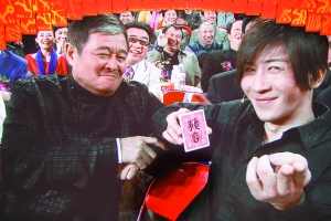 獲得語(yǔ)言類一等獎(jiǎng)的本山大叔在元宵晚會(huì)上依然是只露面不表演。去年元宵晚會(huì)上,小沈陽(yáng)一人登臺(tái)獨(dú)唱《大!,不僅現(xiàn)場(chǎng)唱得趙本山淚水漣漣,也讓大家對(duì)師徒二人之間的情誼留下深刻印象。此前有消息稱今年元宵晚會(huì)小沈陽(yáng)和王小利將表演二人轉(zhuǎn)絕活,但最終小沈陽(yáng)、王小利及趙本山首位歌手徒弟湯潮合唱了一首歌曲《美了美了》,以此“慶!钡锚(jiǎng)之后的好心情。
