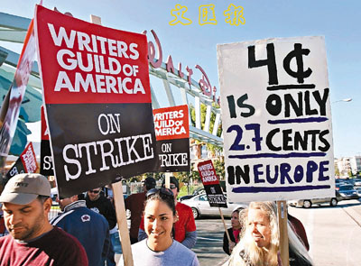 中新網(wǎng)11月14日電 因DVD及網(wǎng)絡(luò)下載等利益分帳無法達(dá)成共識,美國作家協(xié)會和影視監(jiān)制聯(lián)盟的關(guān)系破裂問題已進(jìn)入第8日,不少人都堅持每天在好萊塢片廠門前示威。只是監(jiān)制聯(lián)盟方面現(xiàn)已作出還擊,前日于兩份業(yè)內(nèi)刊物《Varitey》與《The Hollywood Reporter》刊登全版廣告重申立場,宣稱編劇們早已獲得影視作品被下載時的收益。