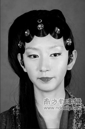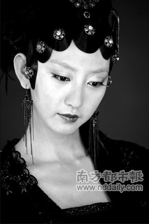 本次公布的照片和網(wǎng)上意外泄露的版本果然有所不同。披下來的“蘇三”式頭發(fā)在正式版本中被盤起來了,一襲深色系帶蕾絲花邊的服裝也比之前黑、綠、紫紅的搭配版本華貴許多。為了突出秦可卿的性感,秦可卿出現(xiàn)的姿態(tài)卻是紅唇綠眼,貼片頭上的裝飾也更加花哨,還戴了一朵紫色大花。別于其他人高領(lǐng)的造型,秦可卿是抹胸式的露頸裝扮亮相的。(記者 齊帥)