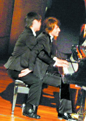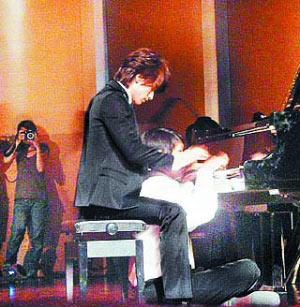 周董彈琴說愛的《不能說的秘密》大紅,言承旭在新戲《星心的淚光》也化身“琴圣”,可惜他琴藝不佳,須由替身“胯下”代彈,兩人十分尷尬,頻頻笑場,變成“男體交纏”的詭異畫面,引起臺下從外地趕來捧場的師奶粉絲兼臨時演員陣陣驚呼,他拍完后也直呼有趣,“我本來就沒鋼琴基礎(chǔ),為拍演唱會表演已苦練了劇情需要的幾首曲子,但當天拍攝的曲目太難,因此讓替‘手’上場。”
