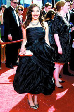 電影大明星、監(jiān)制迷你劇集《約翰·亞當(dāng)斯》獲提名的湯姆·漢克斯也同夫人一同現(xiàn)身紅毯,憑借《伯納德與桃瑞絲》獲提名的蘇珊·薩蘭登也讓紅毯“星味”大增。去年斬獲艾美獎(jiǎng)喜劇類(lèi)最佳女主角的“丑女”亞美莉卡·弗雷拉一直深受觀眾喜愛(ài),但今年的她胖了很多,一身并不合體的黑裙讓人實(shí)在不敢恭維,相比《丑女貝蒂》中的配角維妮莎·威廉姆斯一身山水畫(huà)風(fēng)情的長(zhǎng)裙黯然失色,只不過(guò)“貝蒂”更具喜劇效果。