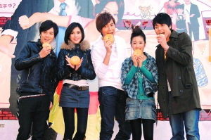 為了幫偶像劇《我的億萬面包》搶攻收視率冠軍寶座,主演鄭元暢(小綜)及林依晨等人日前舉行影迷見面會,玩游戲比賽只能用嘴巴看誰先吃完食物。林依晨不顧金鐘視后的身份,在“粉絲”面前表演大口吞面包,一度還差點噎到。鄭元暢趕緊要林依晨把吃進(jìn)嘴里一半的面包傳給他,兩人嘴對嘴的親昵畫面,讓全場“粉絲”看得尖叫連連。林依晨在戲中賺錢養(yǎng)男友,現(xiàn)實中,她表示不可能做得到,“應(yīng)該是要互相照顧吧”。