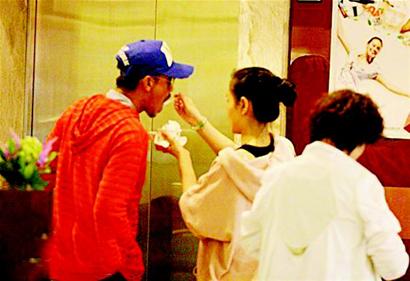 當晚6時許,新婚夫婦王學兵、孫寧到商場購置生活用品。王學兵身穿橘紅色上衣、牛仔褲,戴黑框眼鏡,孫寧一身休閑打扮,橘紅色的挎包與王學兵的上衣相呼應(yīng)。兩人買完一堆生活用品之后,王學兵又買了冰淇淋,在等候電梯時,孫寧甜蜜地喂王學兵吃冰淇淋。