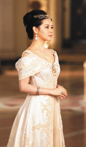 憑《大長(zhǎng)今》風(fēng)靡全亞洲的韓國(guó)女星李英愛(ài),前日現(xiàn)身上海展覽館為韓國(guó)某化妝品牌拍攝廣告。展覽中心被巧妙布置成具有歐洲風(fēng)格的皇宮,李英愛(ài)在低溫天氣下以一襲性感高貴的金色拖地長(zhǎng)裙出現(xiàn),高聳的發(fā)髻上佩帶著華麗的鉆飾,顯得分外雍容華貴。