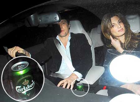 據(jù)英國(guó)每日郵報(bào)報(bào)道,休·格蘭特與富婆女友Jemima Khan的感情分分合合,最近又悄悄相約見面,駕車出游。不過(guò)在休·格蘭特的右手邊,還有一罐已經(jīng)打開的啤酒,而休·格蘭特也面色微紅,被疑酒后駕車。