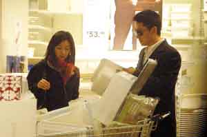 當(dāng)晚10時(shí)左右,周杰與一神秘女子在北京某家私城看家私。雖然已經(jīng)是晚上,周杰還特意戴上一副超大墨鏡,以避免被人認(rèn)出。周杰身邊則一直緊跟著一位長發(fā)黑衣女子,兩人共同推著購物車,仔細(xì)挑選物品,很快已經(jīng)裝滿一車。二人邊看邊商量,又一起量度尺寸,周杰挑選了一個(gè)鐵質(zhì)盒子,身旁的女子似乎很會(huì)持家過日子,馬上表示太貴了,不劃算,周杰便順從地放下盒子,兩人儼如夫妻般有默契。沒多久二人到浴室部揀選用品,還專心聽店員講解設(shè)計(jì)。