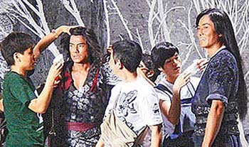 中新網(wǎng)4月22日電 電影《風云II》在曼谷試拍2周,昨正式開鏡,鄭伊健(飾聶風)、郭富城(飾步驚云)一開打就打破頭,只見聶風拿刀朝步驚云的頭砍去,步驚云來不及閃,刀便敲上他的腦門,當下郭富城捂住左額頭痛苦不已,雖沒血流如注,但他額頭已腫如乒乓球大,他搞笑說:“沒關系啦,就算我為迎接奧運,額頭多個乒乓球!