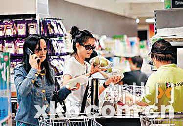 邱淑貞先挑選了兩個(gè)木瓜及奇異果,然后又買了幾包煲湯的湯料及調(diào)味料等。選購(gòu)過程中,因?yàn)榘l(fā)現(xiàn)被媒體跟拍,邱淑貞立刻戴上墨鏡繼續(xù)購(gòu)物。隨后,邱淑貞又給女兒挑了幾盒餅干、棉花糖和面包。15分鐘后,選購(gòu)?fù)戤叺那袷缲懽叩绞浙y處結(jié)賬,共付款638元。雖然有保姆車接送,但邱淑貞仍然選擇了超市的免費(fèi)送貨服務(wù),填好地址后,只拿著木瓜和奇異果離開,由司機(jī)送回家照顧女兒?磥,當(dāng)上豪門少奶奶的邱淑貞仍然有一雙精明的眼睛,堅(jiān)持勤儉持家。