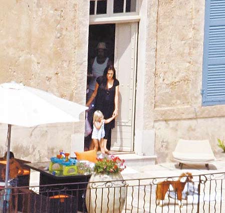 茱莉帶女兒希洛在家門前玩耍,被媒體遠(yuǎn)距離偷拍。