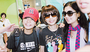 幾位明星都獲贈(zèng)了“禮物”——為奧運(yùn)加油的塑像。今天剛好過(guò)生日的潘瑋柏收到的是一尊踩滑板的塑像,充滿陽(yáng)光活力,他開心地說(shuō):“我要把這個(gè)生日禮物帶回家!”談到馬上就要開幕的奧運(yùn)會(huì),潘瑋柏大聲撒嬌:“好想有人給我25張門票,我要到現(xiàn)場(chǎng)看比賽!”青春可人的S.H.E三個(gè)小妮子被塑造成拉拉隊(duì)的形象,三個(gè)人見到了嘰嘰喳喳地評(píng)論:“最貼心就是給我們都裝上假睫毛!”三個(gè)人在現(xiàn)場(chǎng)分享了她們最愛(ài)的運(yùn)動(dòng),ELLA最近因?yàn)槊陨蠜_浪而被曬成了小麥膚色,而HEBE則因?yàn)榕碾娨晞《鴲?ài)上籃球,兩人都在現(xiàn)場(chǎng)像模像樣地表演起自己喜愛(ài)運(yùn)動(dòng)的動(dòng)作。輪到SELINA,她笑著說(shuō):“我從小就最愛(ài)游泳,自由式和蛙式都不錯(cuò),現(xiàn)場(chǎng)就不展示了!”壓軸上場(chǎng)的周杰倫贏得了最高的歡呼聲,主演過(guò)《大灌籃》的他得到特別優(yōu)待,巨型的扣籃動(dòng)作塑像從場(chǎng)館的外墻“破墻而出”,格外震撼,F(xiàn)場(chǎng)的志愿者也一起大喊:“周董加油!”