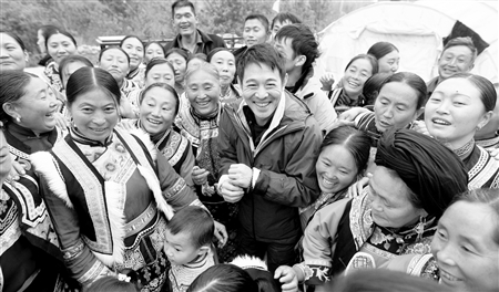 當(dāng)天,李連杰還走訪了茂縣境內(nèi)的羌繡技藝培訓(xùn)基地,之后,他又繼續(xù)趕往綜渠鄉(xiāng)的羌繡幫扶點(diǎn),探望那里的繡女朱召應(yīng)。朱召應(yīng)和丈夫在汶川大地震中雙雙受傷,她的脊柱受損不能站立,她的兒女又有殘疾,生活非常艱難,后來(lái)朱召應(yīng)加入羌族婦女就業(yè)幫扶計(jì)劃,每天埋頭做羌繡,生活有了很大改善。李連杰在她居住的帳篷里,不斷鼓勵(lì)這個(gè)坐在輪椅上的堅(jiān)強(qiáng)女性,“你一定要繼續(xù)加油,總會(huì)慢慢好起來(lái)的!彪x開(kāi)茂縣之前,有人把剛剛收到的一條新聞短信拿給李連杰看,原來(lái)這是本報(bào)“華西手機(jī)報(bào)”發(fā)出的一條新聞,正是轉(zhuǎn)載昨日本報(bào)的報(bào)道《慈善大俠李連杰來(lái)到咱羌寨》,李連杰看了后很是高興,不過(guò)他說(shuō):“做慈善其實(shí)并不是我一個(gè)人的事,大家一起努力才能成功,有了我們是一家人的信念,一定能戰(zhàn)勝困難!