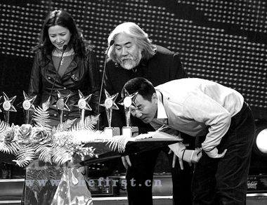 頒獎現(xiàn)場還出現(xiàn)了許多花絮。在陳建斌準(zhǔn)備領(lǐng)取 “中國劇風(fēng)尚懷舊英雄劇創(chuàng)新角色”時,擺在頒獎嘉賓張紀(jì)中和何晴面前的卻有一排獎杯,“我先給你找找啊,別給錯了”,張紀(jì)中只得挨個尋找,無奈現(xiàn)場的燈光偏暗,張紀(jì)中拿起其中一個問何晴“是這個嗎?”何晴看了半天,搖了搖頭,無奈之下,張紀(jì)中招呼等在一旁領(lǐng)獎的陳建斌自己來找獎杯。“還有這樣的呢,領(lǐng)獎嘉賓自己給自己找獎杯。”連主持人李斌都看不過去了。想必這個獎對陳建斌來說可是“來之不易”。記者 張碩 趙風(fēng)果 攝