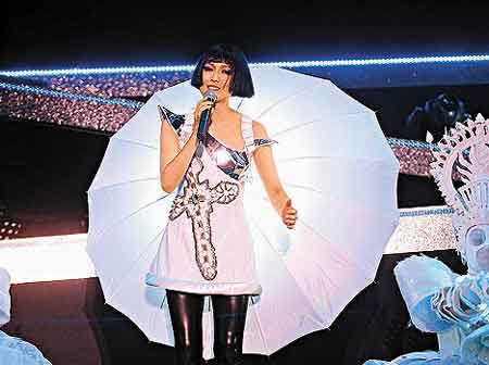 據(jù)香港媒體報道,鄭秀文前晚在上海可容納三萬觀眾的虹口體育場舉行一場演唱會,是夜全場爆滿,雖然鄭秀文以唱廣東歌為主,只唱了幾首普通話歌,但觀眾反應(yīng)仍很熱烈。不過在演唱雜錦快歌時,她的耳機突然失靈,在13分鐘的又唱又跳過程中,原來她完全聽不到自己的聲音,唱罷她在臺上說:“我很不開心,耳機壞掉,我完全聽不到自己在唱什么,所以我要重唱這部份!彼挥衷俪偬,完全沒有失準(zhǔn)。