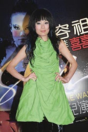 中新網(wǎng)2月27 日電 據(jù)香港明報(bào)報(bào)道,容祖兒穿上一襲翠綠色連身裙出席“雙喜臨門慶祝會(huì)”,席間除了公布兩張新碟均沖破白金唱片銷量外,她更宣布接替Twins原定4月于紅館的檔期,并加開3場(chǎng)。
