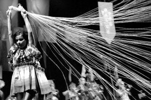 演出期間,比約克一度化身“蜘蛛女”,身著五彩斑斕的演出服展現(xiàn)“吐絲”一幕。而演唱會的下半部分簡直是在比約克和歌迷的熱歌熱舞中進行的。圖/陳強華
