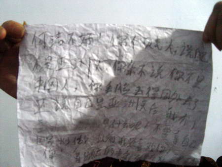 現(xiàn)場(chǎng)發(fā)現(xiàn)的抗議信