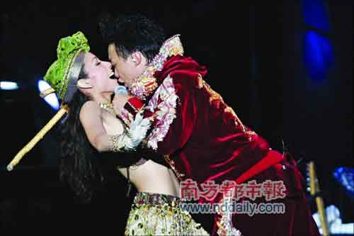 當(dāng)陳奕迅唱國語歌《十年》時,臺下觀眾大唱粵語版《明年今日》對著干。陳奕迅最后應(yīng)歌迷的要求唱了一遍粵語版《明年今日》,觀眾歡呼。