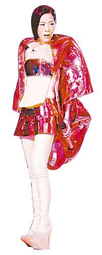 關(guān)淑怡個(gè)唱造型很是前衛(wèi),比如這套融合金屬和塑膠的衣服。